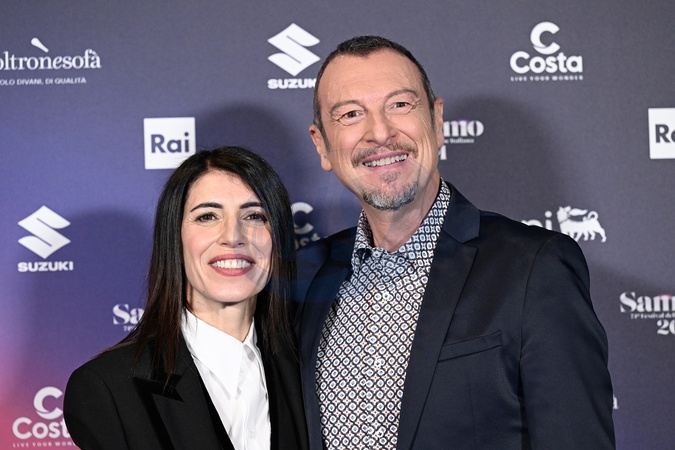 Singer Giorgia and Amadeus, the hosts of the second day of Sanremo Music Festival, Credit:Maria Laura Antonelli / Avalon