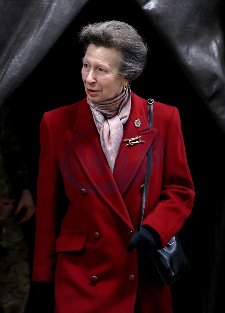 Bicester, UK, 07 February 2024: Britain's Princess Anne, Princess Royal speaks with military personnel as she views a demonstration in the indoor training area during her visit to the Defence Explosive Ordnance Disposal Training Regiment at St George's Barracks in Bicester, UK. The Princess Royal is Colonel in Chief of The Royal Logistical Corps., Credit:Chris Jackson / Avalon