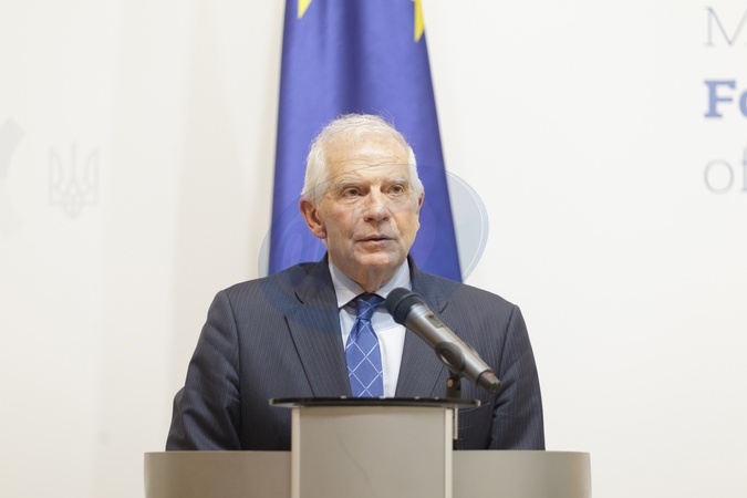 KYIV, UKRAINE - FEBRUARY 07, 2024 - EU High Representative for Foreign Affairs and Security Policy Josep Borrell speaks during a joint press conference with Foreign Minister of Ukraine Dmytro Kuleba in Kyiv, capital of Ukraine., Credit:Kirill Chubotin / Avalon