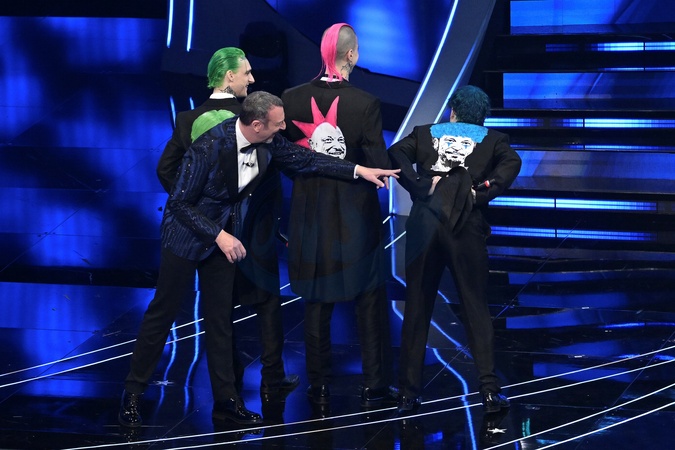 La Sad, Amadeus during the day 2 of 74th Sanremo Music Festival 2024, Italy - 07 Feb 2024, Credit:Maria Laura Antonelli / Avalon
