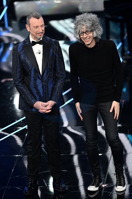Giovanni Allevi, Amadeus during the day 2 of 74th Sanremo Music Festival 2024, Italy - 07 Feb 2024, Credit:Maria Laura Antonelli / Avalon