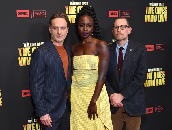 Andrew Lincoln, Danai Gurira and Scott M. Gimple arriving to "The Walking Dead: The Ones Who Live” red carpet event held at the Linwood Dunn Theater on February 7, 2024 in Los Angeles, Ca.© Lisa OConnor/AFF-USA.com