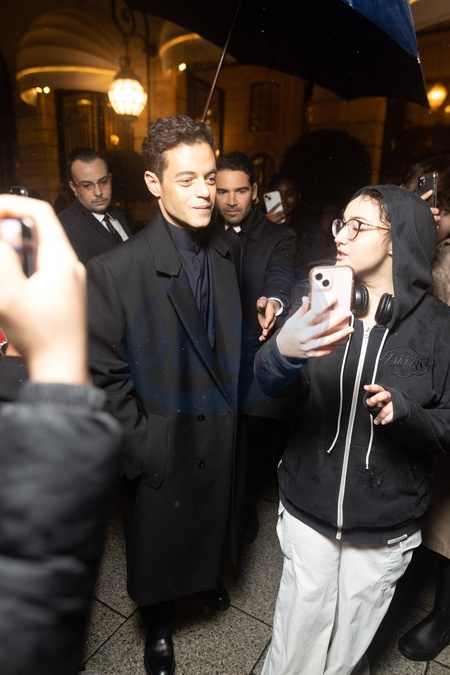 Rami Malek et sa compagne Emma Corrin sortent de l'hôtel Ritz Paris le 7 février 2024. © Tiziano Da Silva / Pierre Perusseau / Bestimge Rami Malek and his partner Emma Corrin leave the Ritz Paris hotel on 7 February 2024.