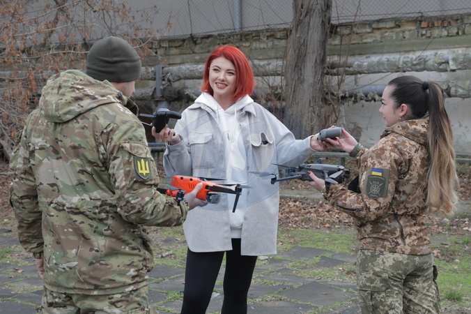 ODESA, UKRAINE - FEBRUARY 07, 2024 - The military master drone control skills in the presence of a teacher and director of the Free Air drone training school Michelle Armand (C), Odesa, southern Ukraine., Credit:Nina Liashonok / Avalon