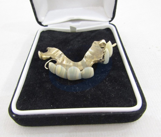 Pictures MUST credit: Cotswold Auction Company Gold-mounted false teeth that belonged to Sir Winston Churchill have been sold at auction for just over £23,000 GBP / €21.100 euros The upper dentures were worn by the wartime leader during many of his most famous speeches. They were specifically made to preserve his natural lisp and so important he carried two sets with him at all times. The teeth were sold for more than double the £8,000 GBP / €9.370 euros estimate. Churchill, Britain's prime minister during World War II , suffered from dental problems most of his life and lost several teeth during his 20s. The false teeth were made for home at the start of the war. The winning bid of was from a UK collector bidding online. The hammer price was £18,000 but the successful bidder paid £23,184 / €27.160 euros with the buyer's premium. The dentures were sold by UK saleroom the Cotswold Auction Company in Cheltenham. Picture supplied by JLPPA