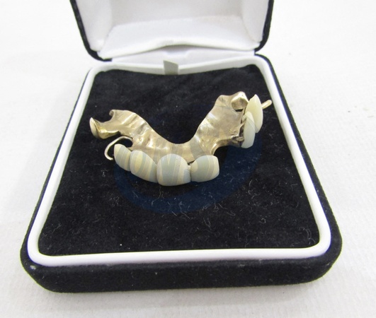 Pictures MUST credit: Cotswold Auction Company Gold-mounted false teeth that belonged to Sir Winston Churchill have been sold at auction for just over £23,000 GBP / €21.100 euros The upper dentures were worn by the wartime leader during many of his most famous speeches. They were specifically made to preserve his natural lisp and so important he carried two sets with him at all times. The teeth were sold for more than double the £8,000 GBP / €9.370 euros estimate. Churchill, Britain's prime minister during World War II , suffered from dental problems most of his life and lost several teeth during his 20s. The false teeth were made for home at the start of the war. The winning bid of was from a UK collector bidding online. The hammer price was £18,000 but the successful bidder paid £23,184 / €27.160 euros with the buyer's premium. The dentures were sold by UK saleroom the Cotswold Auction Company in Cheltenham. Picture supplied by JLPPA