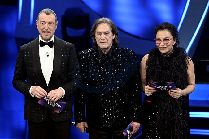 Amadeus, Ricchi e Poveri during the day 2 of 74th Sanremo Music Festival 2024, Italy - 07 Feb 2024, Credit:Maria Laura Antonelli / Avalon