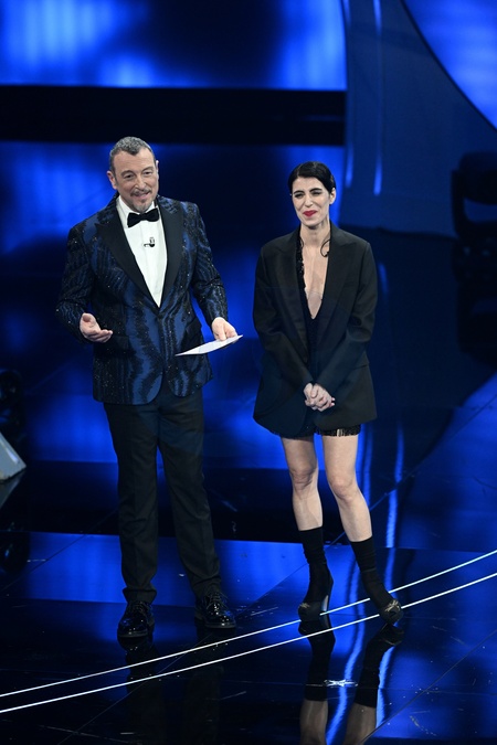 Amadeus, Giorgia during the day 2 of 74th Sanremo Music Festival 2024, Italy - 07 Feb 2024, Credit:Maria Laura Antonelli / Avalon