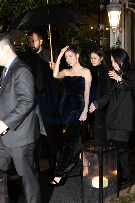 Jisoo (Blackpink) à la sortie du dîner Cartier, pour marquer le 100ème anniversaire de sa conception Trinity, chez Alléno Paris - Yannick Alléno au Pavillon Ledoyen à Paris, France, le 7 février 2024. Guests at the Cartier dinner at Alléno Paris - Yannick Alléno at the Pavillon Ledoyen in Paris on 7 February 2024. Cartier marks the 100th anniversary of its Trinity design with new editions that put a striking twist on the classic creation.