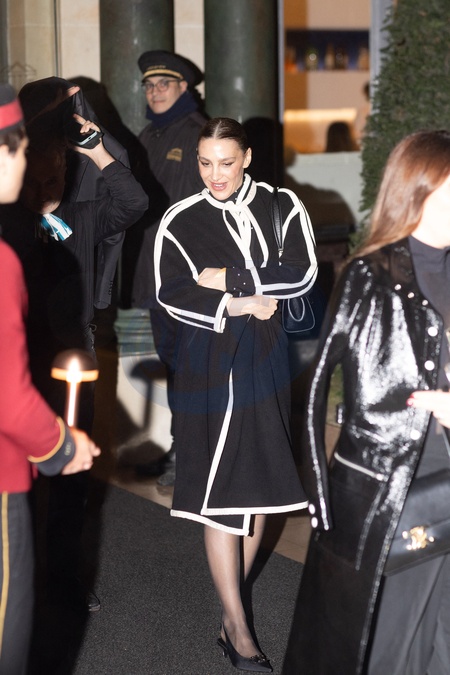 à la sortie du dîner Cartier, pour marquer le 100ème anniversaire de sa conception Trinity, chez Alléno Paris - Yannick Alléno au Pavillon Ledoyen à Paris, France, le 7 février 2024. Guests at the Cartier dinner at Alléno Paris - Yannick Alléno at the Pavillon Ledoyen in Paris on 7 February 2024. Cartier marks the 100th anniversary of its Trinity design with new editions that put a striking twist on the classic creation.