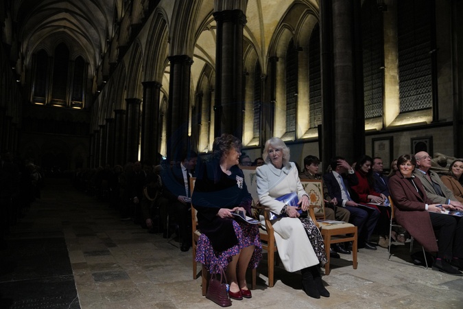 Britain's Queen Camilla, attends a Musical Evening at Salisbury Cathedral, Salisbury, England, Thursday, Feb. 8, 2024, to celebrate the work of local charities., Credit:Kirsty Wigglesworth / Avalon