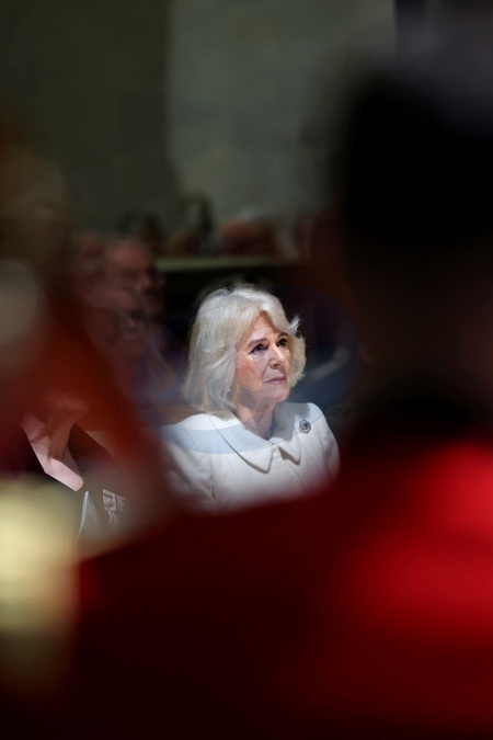 SALISBURY, ENGLAND - FEBRUARY 08: Queen Camilla attends a musical evening at Salisbury Cathedral on February 08, 2024 in Salisbury, England. The evening is being held to celebrate the work of local charities including The Wiltshire Bobby Van Trust, The Wiltshire Air Ambulance, Community First ‚Äě Youth Action Wiltshire and the regimental charities of The Grenadier Guards and The Rifles., Credit:Chris Jackson / Avalon