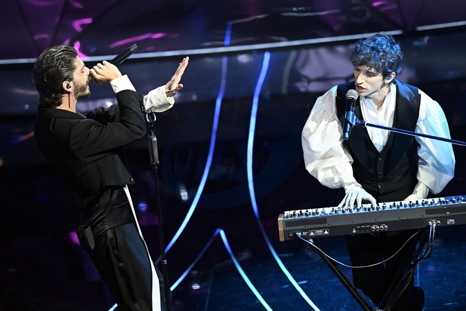 Santi Francesi during Sanremo Italian Song Festival. Sanremo, Italy, 08 February 2024., Credit:Maria Laura Antonelli / Avalon