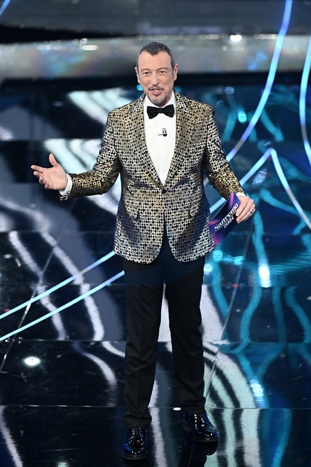 Amadeus during Sanremo Italian Song Festival. Sanremo, Italy, 08 February 2024., Credit:Maria Laura Antonelli / Avalon