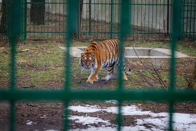 CHUBYNSKE, UKRAINE - FEBRUARY 8, 2024 - A tiger stays in an enclosure at the Wild Animals Rescue Center, Chubynske, Kyiv region, northern Ukraine., Credit:Kirill Chubotin / Avalon