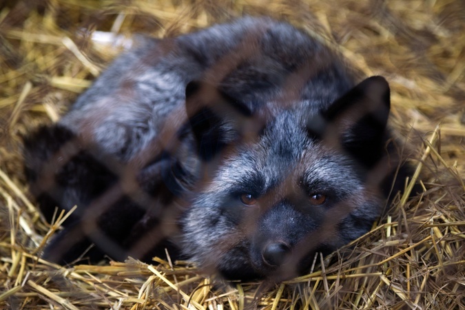 CHUBYNSKE, UKRAINE - FEBRUARY 8, 2024 - A silver fox lives at the Wild Animals Rescue Center, Chubynske, Kyiv region, northern Ukraine., Credit:Kirill Chubotin / Avalon