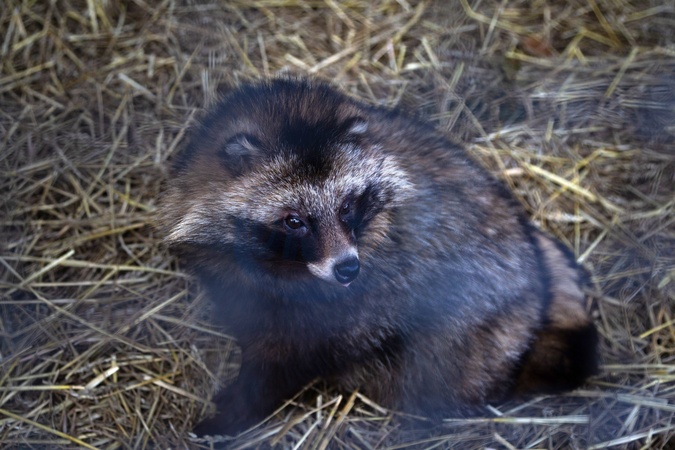 CHUBYNSKE, UKRAINE - FEBRUARY 8, 2024 - A common raccoon dog lives at the Wild Animals Rescue Center, Chubynske, Kyiv region, northern Ukraine., Credit:Kirill Chubotin / Avalon