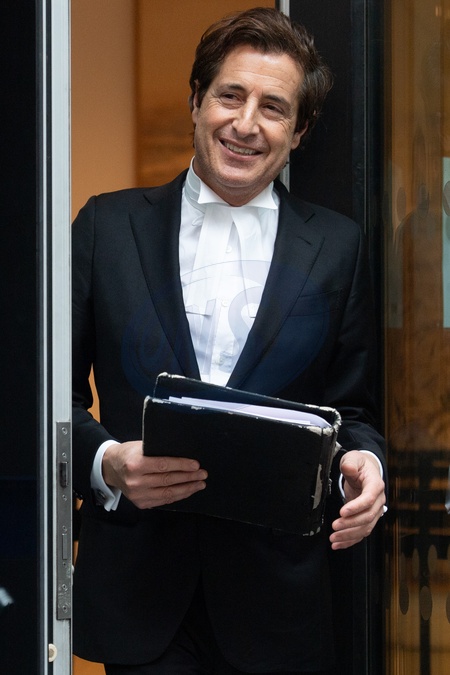 David Sherborne KC - Lawyer for Prince Harry departs The Rolls Building - Royal Courts Of Justice in London, England, UK on Friday 9 February, 2024 and addresses the media with a statement on behalf of the Prince after Mirror Group Newspapers (MGN) settled with him and will make an interim payment of £400,000., Credit:Justin Ng / Avalon