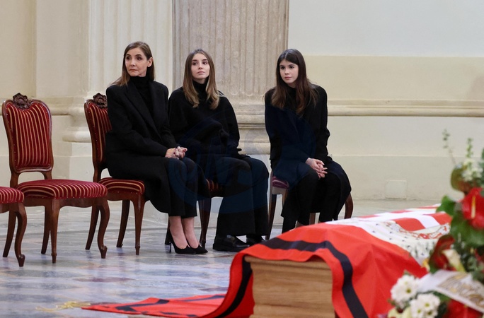 Książę Emmanuel-Philibert Sabaudii uczestniczy wraz z rodziną w stypie pogrzebowej swojego ojca, księcia Wiktora-Emmanuela Sabaudii, w kościele Sant'Uberto w Turynie.
