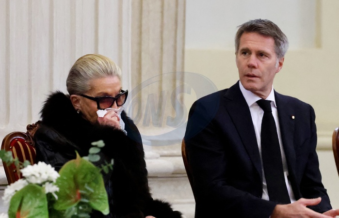 Marina Ricolfi-Doria et son fils, le prince Emmanuel-Philibert de Savoie - Veillée funèbre du prince Victor-Emmanuel de Savoie, en l'Eglise de Sant'Uberto à Turin, en présence de sa veuve Marina Ricolfi-Doria, de son fils, le prince E-P. de Savoie avec sa femme la princesse Clotilde Courau et leurs filles les princesses Vittoria et Louisa, le 9 février 2024. Le fils du dernier roi d'Italie s'est éteint le 3 février 2024 à l'âge de 86 ans. © Dominique Jacovides/Bestimage Funeral wake of Prince Victor-Emmanuel of Savoy, in the Church of Sant'Uberto in Turin, in the presence of his widow Marina Ricolfi-Doria, his son, Prince E-P. of Savoy with his wife Princess Clotilde Courau and their daughters Princesses Vittoria and Louisa, February 9, 2024. The son of the last king of Italy died on February 3, 2024 at the age of 86.