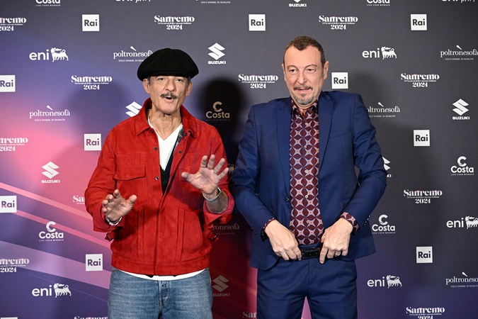 Amadeus and Rosario Fiorello during a photocall on the occasion of the 74th Sanremo Italian Song Festival, in Sanremo, Italy, 10 February 2024.