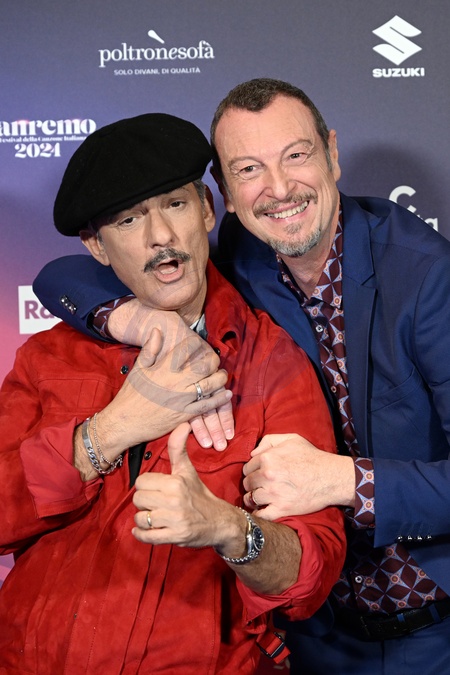 Amadeus and Rosario Fiorello during a photocall on the occasion of the 74th Sanremo Italian Song Festival, in Sanremo, Italy, 10 February 2024.