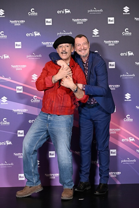 Amadeus and Rosario Fiorello during a photocall on the occasion of the 74th Sanremo Italian Song Festival, in Sanremo, Italy, 10 February 2024.