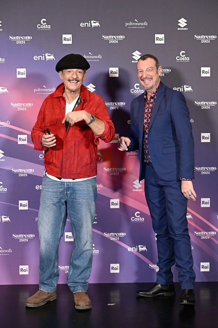 Amadeus and Rosario Fiorello during a photocall on the occasion of the 74th Sanremo Italian Song Festival, in Sanremo, Italy, 10 February 2024.