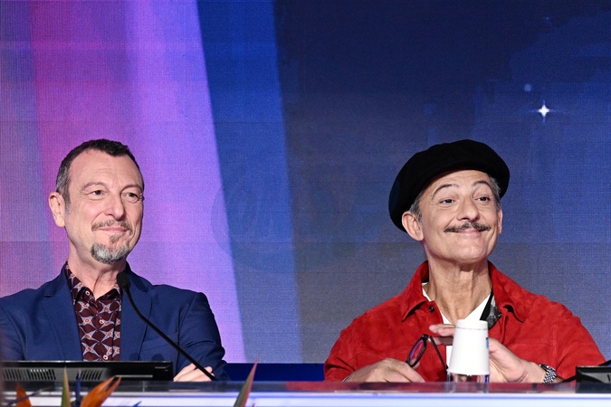 Amadeus and Rosario Fiorello during a photocall on the occasion of the 74th Sanremo Italian Song Festival, in Sanremo, Italy, 10 February 2024.