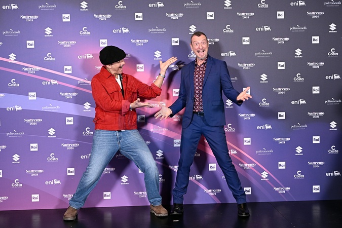 Amadeus and Rosario Fiorello during a photocall on the occasion of the 74th Sanremo Italian Song Festival, in Sanremo, Italy, 10 February 2024.