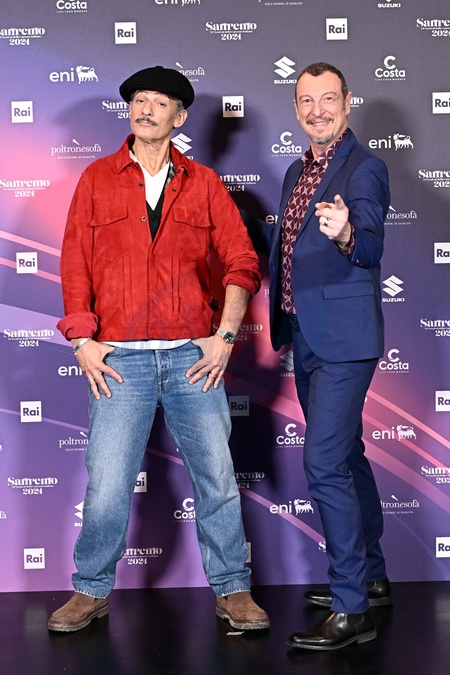 Amadeus and Rosario Fiorello during a photocall on the occasion of the 74th Sanremo Italian Song Festival, in Sanremo, Italy, 10 February 2024.