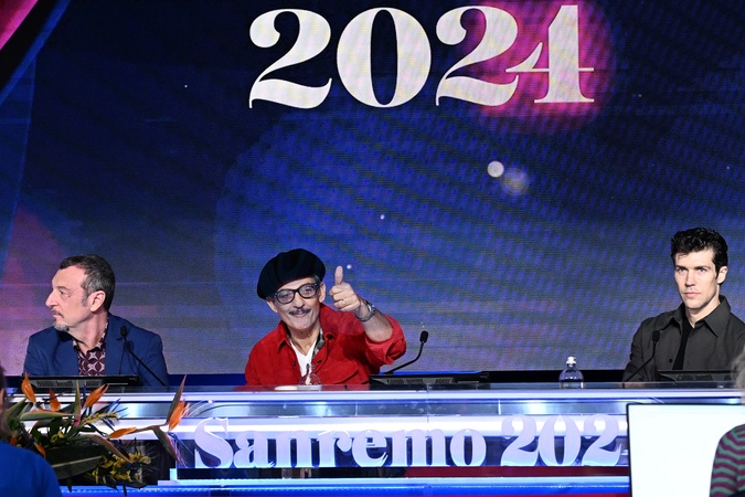 Amadeus, Rosario Fiorello, Roberto Bolle during a photocall on the occasion of the 74th Sanremo Italian Song Festival, in Sanremo, Italy, 10 February 2024, Credit:Maria Laura Antonelli / Avalon
