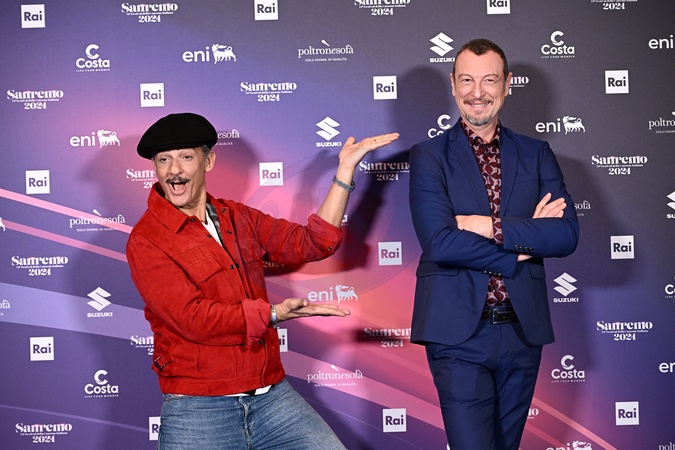 Amadeus and Rosario Fiorello during a photocall on the occasion of the 74th Sanremo Italian Song Festival, in Sanremo, Italy, 10 February 2024.