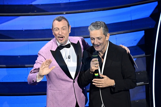 Amadeus, Rosario Fiorello during the day 4 of 74th Sanremo Music Festival 2024, Italy - 09 Feb 2024, Credit:Maria Laura Antonelli / Avalon