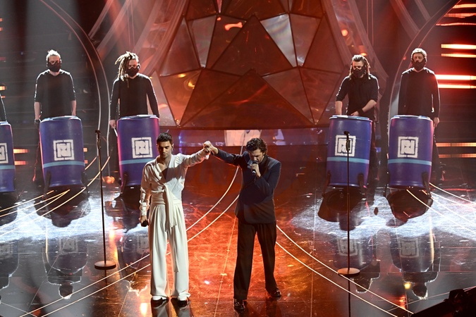 Maninni, Ermal Meta during the day 4 of 74th Sanremo Music Festival 2024, Italy - 09 Feb 2024, Credit:Maria Laura Antonelli / Avalon