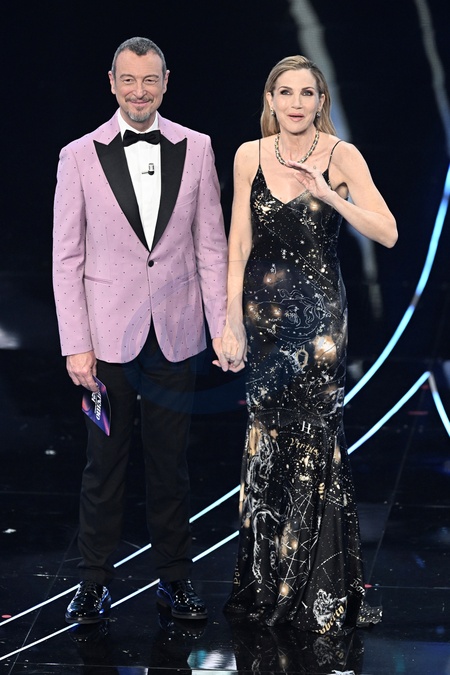 Amadeus, Lorella Cuccarini during the day 4 of 74th Sanremo Music Festival 2024, Italy - 09 Feb 2024, Credit:Maria Laura Antonelli / Avalon