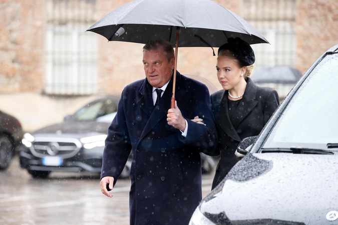 Charles de Bourbon des Deux-Siciles et sa fille Maria Carolina - Les funérailles du prince Victor Emmanuel de Savoie, fils du dernier roi d'Italie, en la basilique de Superga, près de Turin, le 10 février 2004. © Dominique Jacovides/Bestimage The funeral of prince Victor Emmanuel of Savoy, son of the last king of Italy, in the basilica of Superga, near Turin, February 10, 2004.