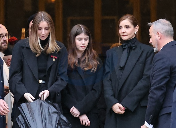 Les princesses Louisa et Vittoria de Savoie avec leur mère, la princesse Clotilde Courau de Savoie - Sorties des funérailles du prince Victor Emmanuel de Savoie en la basilique de Superga près de Turin le 10 février 2024. © Dominique Jacovides/Bestimage Exits from the funeral of Prince Victor Emmanuel of Savoy at the Basilica of Superga near Turin on February 10, 2024.