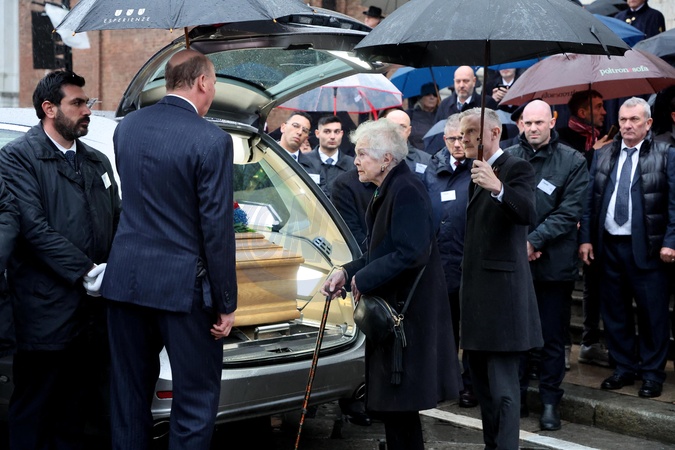 La princesse Maria Pia de Savoie - Sorties des funérailles du prince Victor Emmanuel de Savoie en la basilique de Superga près de Turin le 10 février 2024. © Dominique Jacovides/Bestimage Exits from the funeral of Prince Victor Emmanuel of Savoy at the Basilica of Superga near Turin on February 10, 2024.