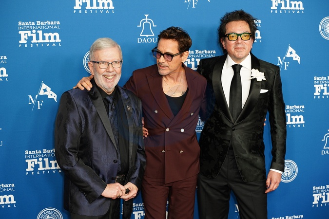 Leonard Maltin, Robert Downey Jr, Roger Durling at Santa Barbara International Film Festival 2024 at the Arlington Theatre, Santa Barbara, USA, on 09 February 2024., Credit:JERRY PEREZ / Avalon
