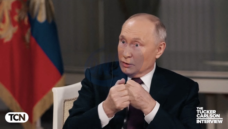 Pictures MUST credit: Tucker Carlson Network US journalist Tucker Carlson interviews Russian president Vladimir Putin at the Kremlin in Moscow on February 6, 2024 with the interview broadcast on February 8. Picture supplied by JLPPA