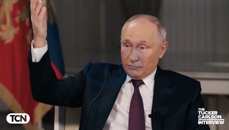 Pictures MUST credit: Tucker Carlson Network US journalist Tucker Carlson interviews Russian president Vladimir Putin at the Kremlin in Moscow on February 6, 2024 with the interview broadcast on February 8. Picture supplied by JLPPA