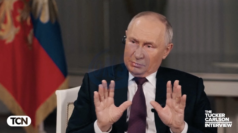 Pictures MUST credit: Tucker Carlson Network US journalist Tucker Carlson interviews Russian president Vladimir Putin at the Kremlin in Moscow on February 6, 2024 with the interview broadcast on February 8. Picture supplied by JLPPA