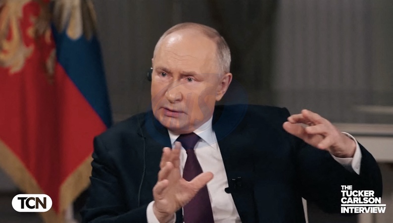 Pictures MUST credit: Tucker Carlson Network US journalist Tucker Carlson interviews Russian president Vladimir Putin at the Kremlin in Moscow on February 6, 2024 with the interview broadcast on February 8. Picture supplied by JLPPA