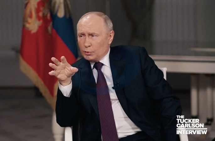 Pictures MUST credit: Tucker Carlson Network US journalist Tucker Carlson interviews Russian president Vladimir Putin at the Kremlin in Moscow on February 6, 2024 with the interview broadcast on February 8. Picture supplied by JLPPA