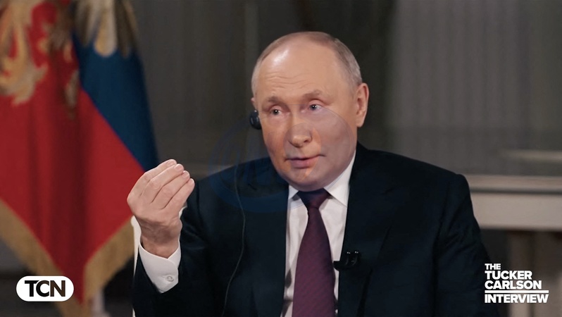 Pictures MUST credit: Tucker Carlson Network US journalist Tucker Carlson interviews Russian president Vladimir Putin at the Kremlin in Moscow on February 6, 2024 with the interview broadcast on February 8. Picture supplied by JLPPA