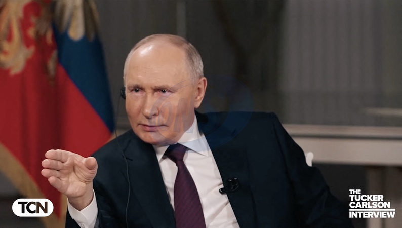 Pictures MUST credit: Tucker Carlson Network US journalist Tucker Carlson interviews Russian president Vladimir Putin at the Kremlin in Moscow on February 6, 2024 with the interview broadcast on February 8. Picture supplied by JLPPA