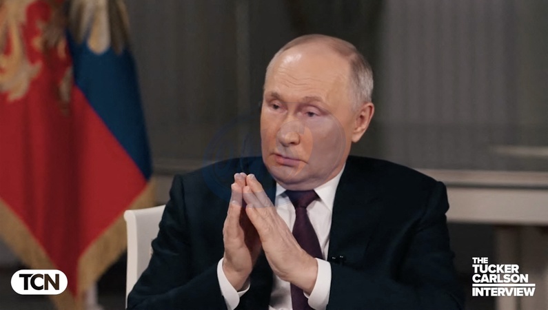 Pictures MUST credit: Tucker Carlson Network US journalist Tucker Carlson interviews Russian president Vladimir Putin at the Kremlin in Moscow on February 6, 2024 with the interview broadcast on February 8. Picture supplied by JLPPA