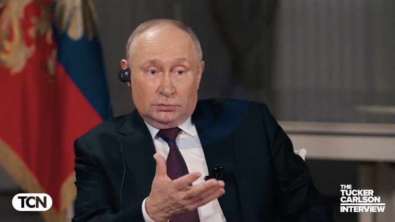Pictures MUST credit: Tucker Carlson Network US journalist Tucker Carlson interviews Russian president Vladimir Putin at the Kremlin in Moscow on February 6, 2024 with the interview broadcast on February 8. Picture supplied by JLPPA
