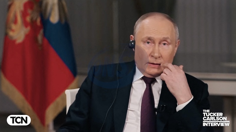 Pictures MUST credit: Tucker Carlson Network US journalist Tucker Carlson interviews Russian president Vladimir Putin at the Kremlin in Moscow on February 6, 2024 with the interview broadcast on February 8. Picture supplied by JLPPA